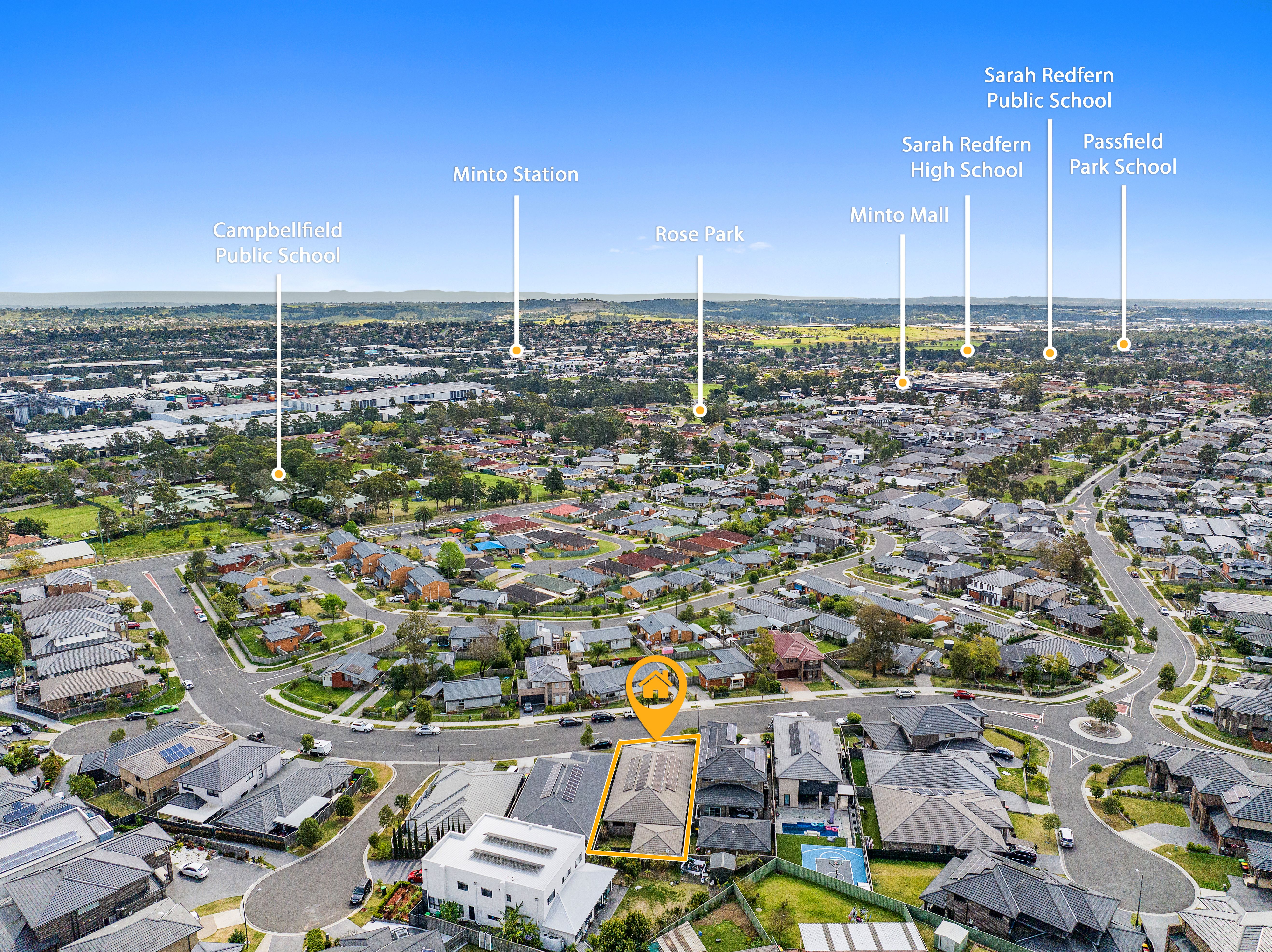 Location Features: (approximately via google maps) • 4 minute walk to Campbellfield Public School • 2 minute drive to Pembroke Park • 3 minute drive to Minto Mall Shopping Centre • 3 minute drive to Sarah Redfern Public & High School • 4 minute drive to Minto Train Station